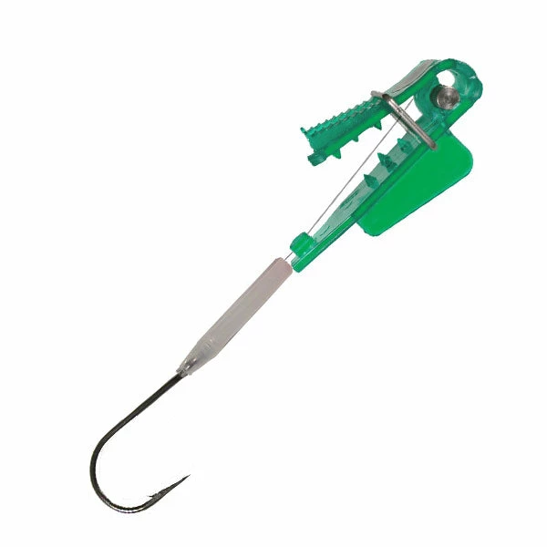 While originally designed for use while trolling for Salmon they can be trolled or used while bottom fishing for many species. The fin on the back of the bait holder head rotates your bait while trolling or fishing in a current. The bait holders head also contains Electronic Bait Technology.