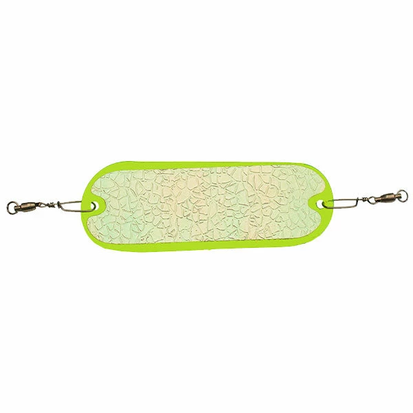 Pro-Troll’s ProChip 4 flashers are 4 inches long and have a diagonal kicker fin on the back. This gives the flasher an erratic spinning and kicking action.